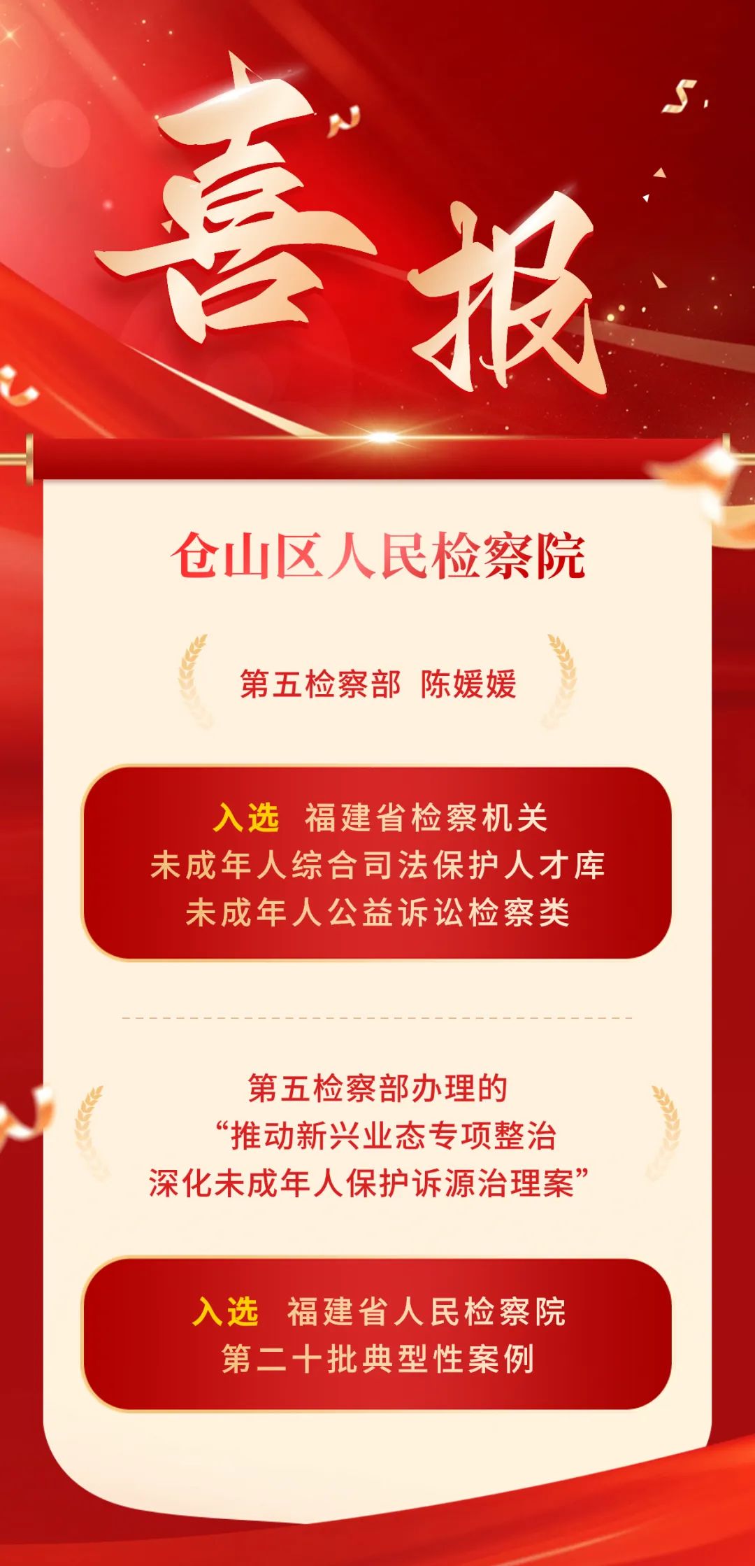 喜报丨全省人才库及典型案例,仓山检察上榜!