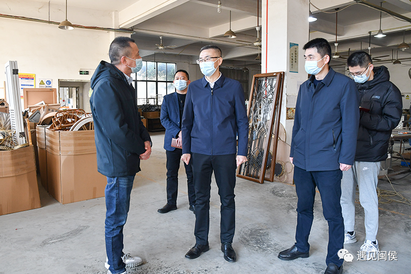 2023年1月31日,闽侯县委书记赵明正带领县直有关部门负责人到甘蔗街道、闽侯经济发展中心园区走访服务工艺品企业。县领导林国晃、陈晟参加活动。