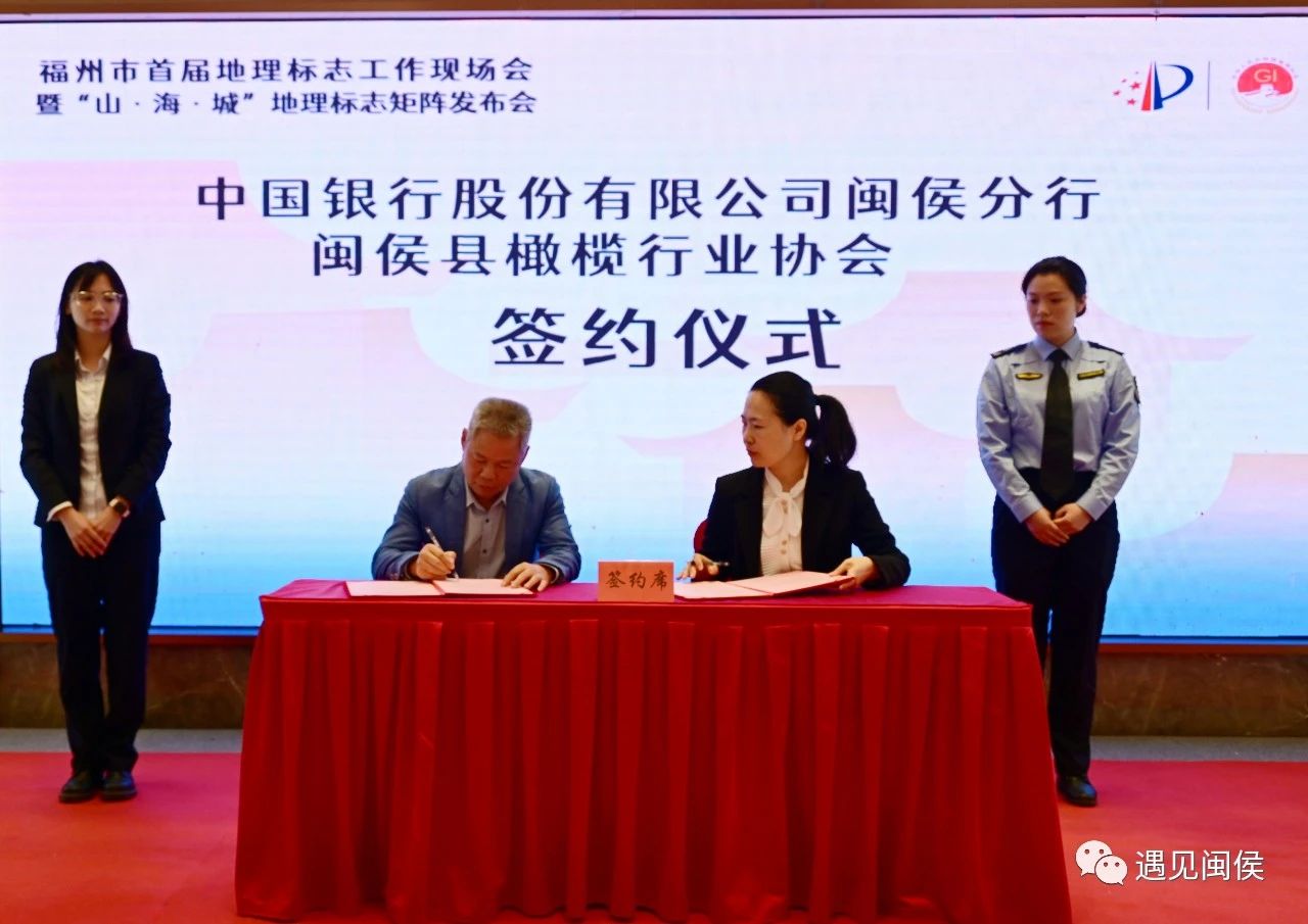 ▲(中国银行股份有限公司闽侯分行和闽侯县橄榄行业协会双方就“闽侯橄榄”地理标志商标达成金融合作框架并现场签约)