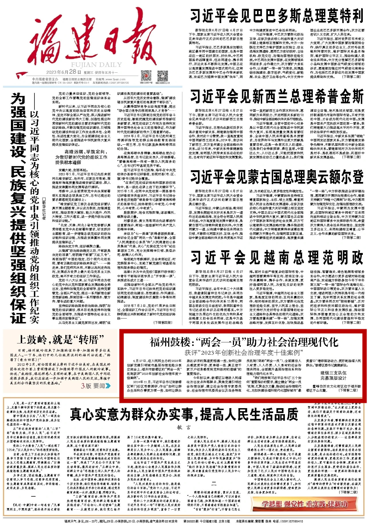 “我们将按照习近平总书记‘三个如何’重要指示的要求,建立健全‘两会一员’机制,汇聚各方力量,推动社会治理现代化,为加快建设福州现代化国际城市‘最美窗口’增添强劲动力,更好地造福人民群众。”鼓楼区委书记黄建新说。
