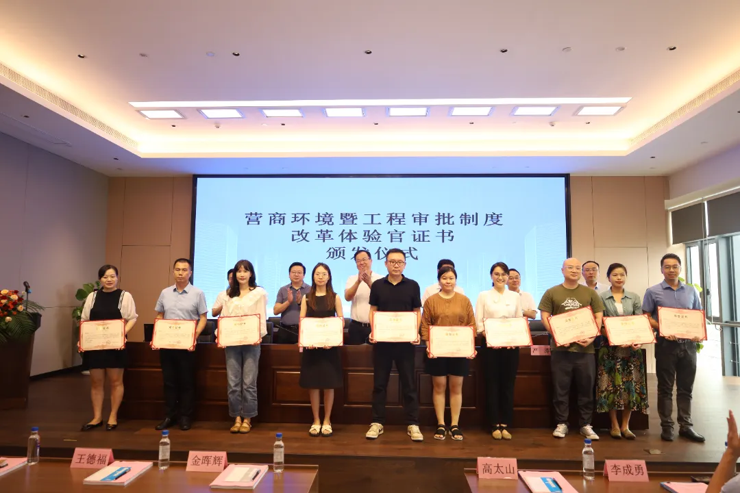 现场还举行了“营商环境体验官”证书颁发仪式,未来一年里,30位“体验官”将起到“桥梁纽带”作用,在报件过程中,收集反馈企业和群众在日常生产经营过程中遇到的困难问题,并提出意见和建议,帮助有关部门更好了解企业实际感受和真正需求,助力化解企业在建设项目审批中的卡点、痛点,提高审批服务效能。