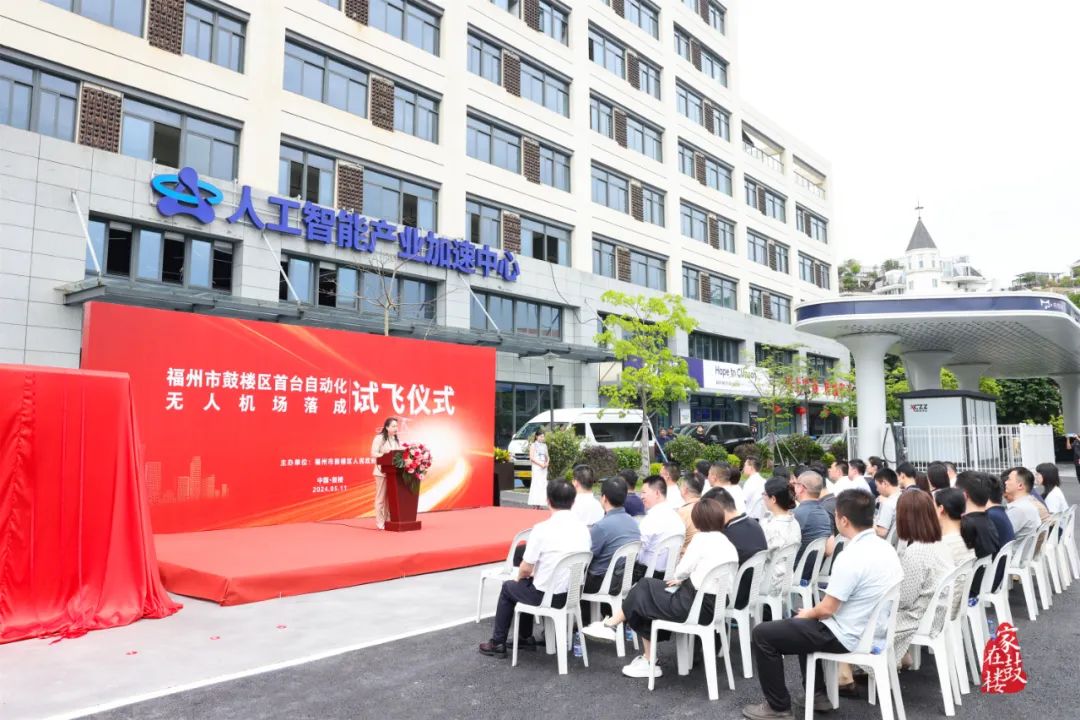 鼓楼区在人工智能产业加速中心举办首台自动化无人机场落成暨试飞仪式。