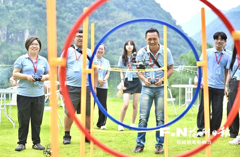 参加研学营的台胞体验无人机操作。记者 林双伟 摄