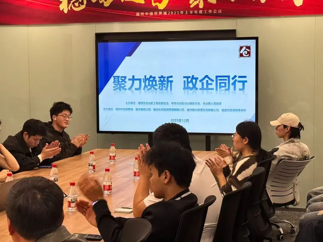2025年12月5日下午,由福州市仓山区工商业联合会、中共仓山区仓山镇委员会、仓山镇人民政府联合主办的“聚力焕新·政企同行”餐饮、零售行业高质量发展行动暨仓山镇政企服务系列活动在中骏世界城活动室成功举办。活动聚焦行业动态、运营策略、劳务用工及政策解读等热点话题,邀请了区工商联、区商务局、区市场监督管理局等部门代表及中骏世界城30余家商户代表共聚一堂,共谋行业发展新路径。