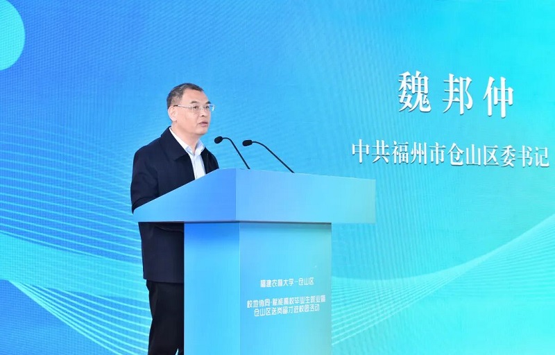 仓山区委书记魏邦仲在致辞中介绍了仓山区的发展优势、产业布局与人才政策等,表示仓山区将为广大青年学子提供广阔平台并全力做好服务保障,希望广大毕业生把握机遇,把个人理想融入时代发展,把专业所长转化为实践动能,在仓山这片热土上施展才华、成就梦想。