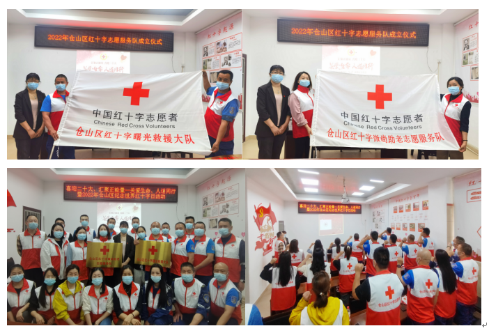 5月9日下午,在仓山区红十字博爱驿站开展仓山区红十字志愿服务队成立仪式,活动现场区红会领导为“仓山区红十字曙光救援大队”和“仓山区红十字微尚助老志愿服务队”授旗授牌,并向他们赠送了中国红十字法和志愿者服装。并组织新红十字志愿者进行入队宣誓。