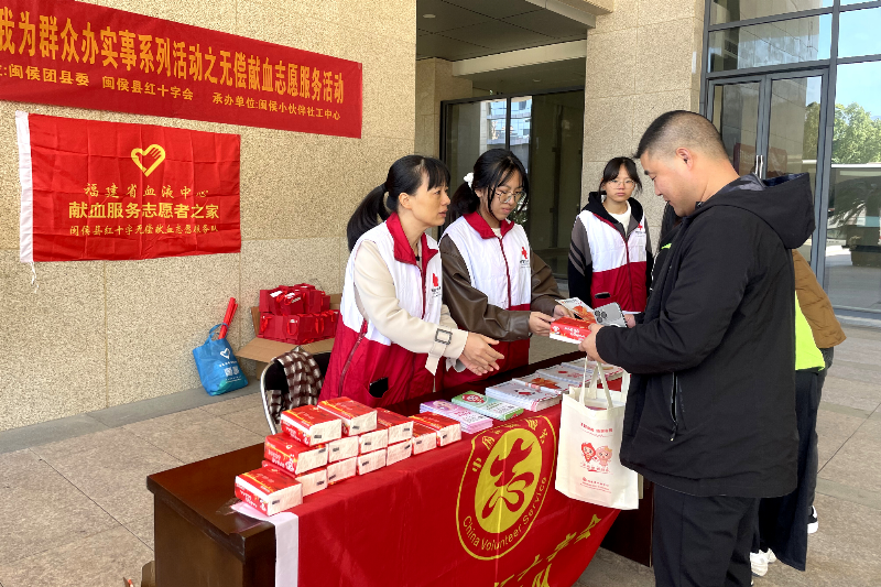 闽侯县红十字服务团、县红十字无偿献血志愿服务队的志愿者们在现场开展志愿服务,为献血者送上热水和小面包,发放无偿献血及造血干细胞捐献知识传单,宣传《福建省献血条例》和“三献”优待政策,鼓励广大干部职工发动亲戚朋友积极加入到无偿献血和造干捐献的队伍中来,现场合计发放宣传材料160余份。
