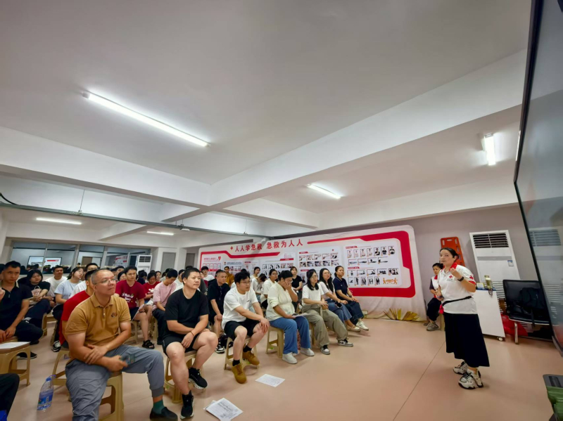 在理论知识讲解环节,福州市红十字会的资深讲师通过生动的案例和通俗易懂的语言,深入浅出地介绍了现场救护的概念、原则和基本流程。重点讲解了心肺复苏术(CPR)、自动体外除颤器(AED)的使用方法、气道异物梗阻的急救处理以及常见创伤的止血包扎等关键知识。学员们认真聆听,不时提问,与讲师积极互动,现场学习氛围浓厚。