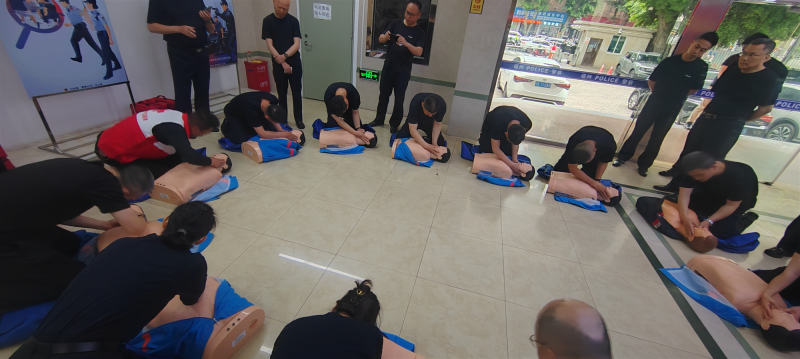 在实操环节,参训民辅警在师资的“手把手”指导下,分组利用模拟人道具进行全流程演练。从判断现场环境安全、识别心搏骤停,到胸外按压的深度与频率控制、人工呼吸的通气量把握,再到AED电极片的精准粘贴与“开机-分析-除颤”的标准流程,每一个动作都经过了反复打磨与严格纠偏。