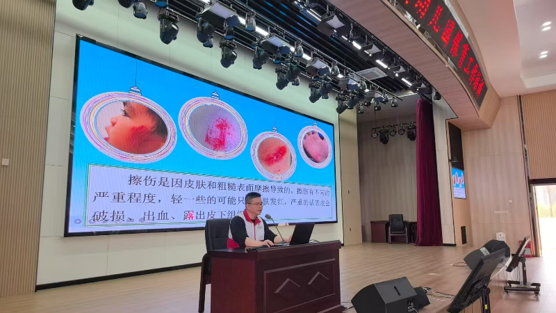 在急救技能培训环节,区红十字会应急救护培训师资李春辉针对幼儿园常见的摔伤、擦伤等情况,详细讲解了伤口处理、止血包扎等实用技能。李医师强调,对于轻微擦伤,应遵循“清洁-消毒-保护”的原则,避免感染;对于关节扭伤或疑似骨折的情况,则需采取“制动-冰敷-固定”的应急措施。