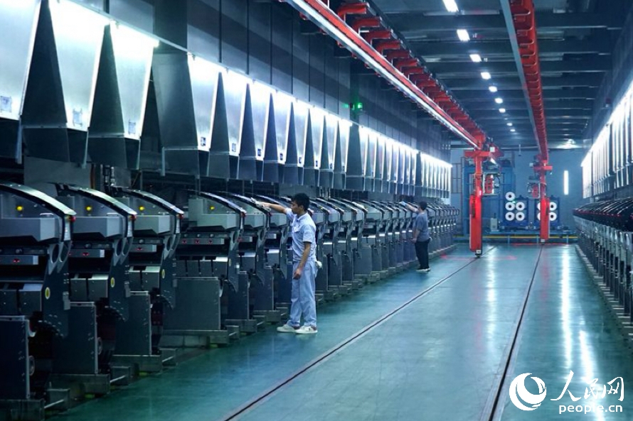 生产线上,纺织设备高速运转,只有零星几个工人巡视;控制室内,一个巨大的电子屏幕实时展示着生产数据、订单状态、能耗信息,随时监控生产全流程……纺织这一传统制造业在永荣股份已然升级为数字化模式。