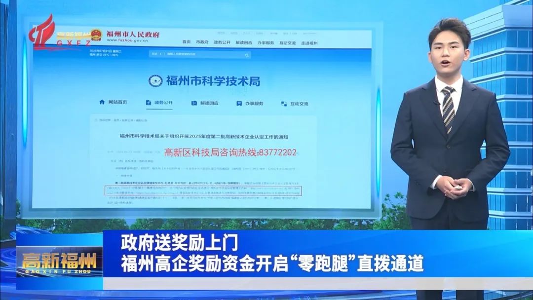 根据福州市科学技术局最新发布的消息:2024年新认定或重新认定的高新技术企业,不用填表、不用跑腿,奖励资金将直接打到公司账户,切实助力高新技术企业高质量发展。同时,福州市2025年度第二批高新技术企业申报工作目前已启动,欢迎辖区符合条件的企业登录官网积极申报,截止时间为7月21日。高新区科技局咨询热线为 83772202。