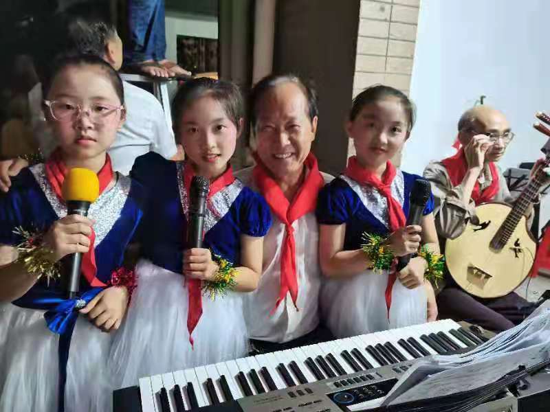 孩子们以热烈的掌声和献鲜花迎接长辈们的到来,他们拿糖果等零食分享他们无忧无虑的童年快乐,孩子们拿着儿歌曲与长辈们一起互动起来,联合演唱了《爱我中华》《六一国际儿童节》《我爱北京天安门》《我们是共产主义接班人》《少年风彩》等歌曲。老少同台大合唱,主题突出,形式多样,以小组唱为主中间穿插老少歌伴舞,还有老少乐器合奏等。老少共同用歌声祝愿中国共产党领导的中国社会主义国家更加强大,人民生活更加美好。“祖孙”带着渴望和期盼,怀着激情和敬意,表达了老少对党的忠诚和对祖国的热爱是一致的。