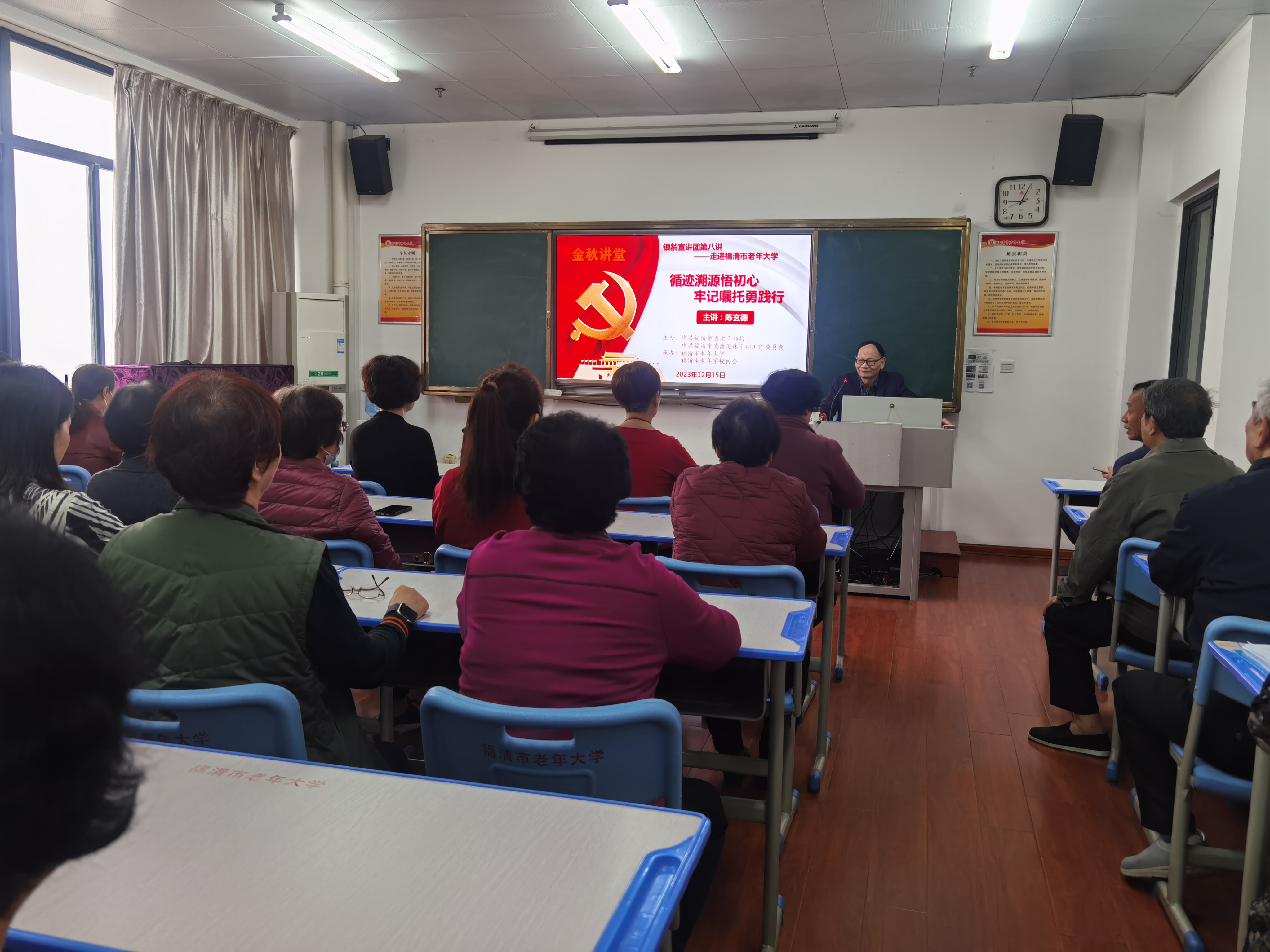 为推进离退休干部党员参加学习贯彻习近平新时代中国特色社会主义思想主题教育走深走实,充分发挥老年大学思想政治教育主阵地作用,12月15日,省“党的创新理论离退休干部宣传小分队”——福清市银龄宣讲团走进市老年大学开展宣讲,老年学员、党员代表50余人参加。
