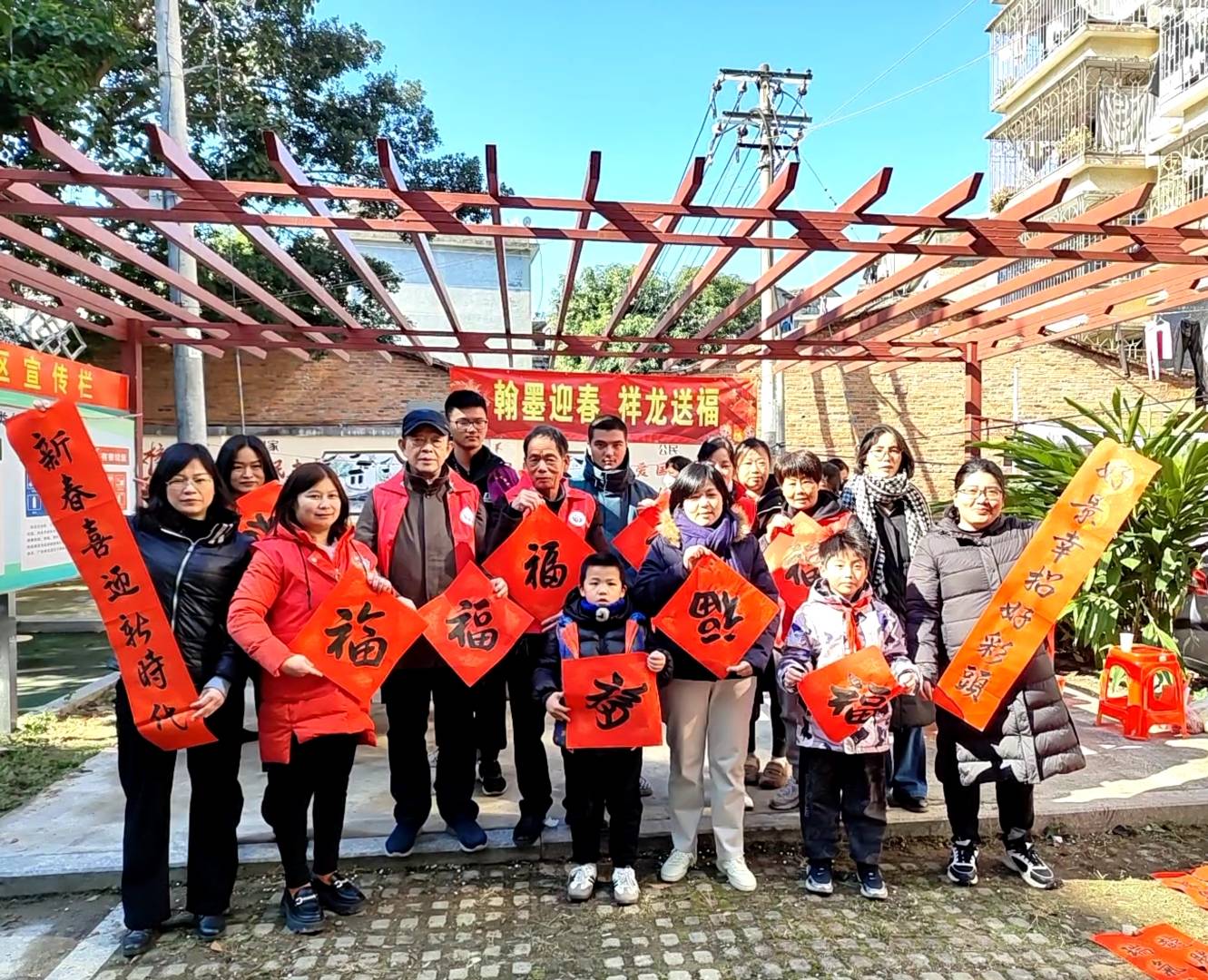中国人有贴春联的习俗,“春回大地,万象更新”,新春给人们带来的是新憧憬和新希望。写春联送喜庆,是弘扬中华优秀传统文化的良好形式,是营造积极向上的社区文化有效途径,是凝聚广大民众建设幸福社区的有效举措,1月24日上午,福州市妇女儿童活动中心、福州市老年大学新店分校联合新厦社区、万科社区、古城社区开展“翰墨迎春 祥龙送福”写春联送祝福志愿服务活动。