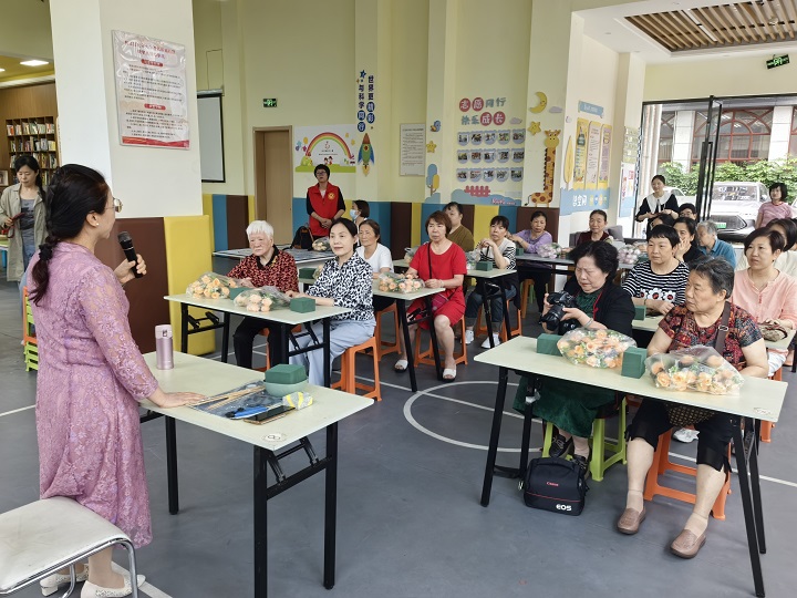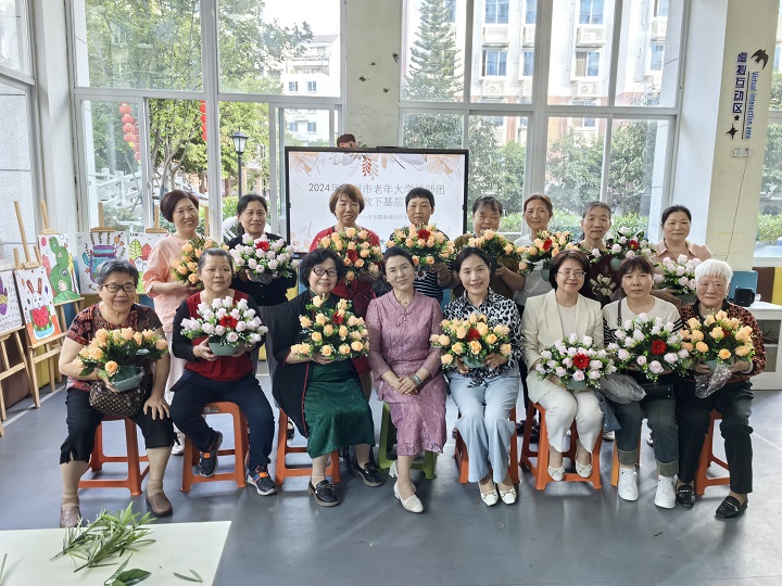 课上,陈兰仙老师详细讲解了插花的种类、技巧及色彩搭配等知识,在老师的悉心指导和帮助下,各位老年学员纷纷拿起手中的花材修剪、搭配,按照自己的创意进行巧妙组合,亲手制作独一无二的母亲节花礼,现场花香四溢、欢乐轻松,节日氛围浓厚。
