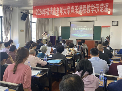 此次示范课由福清市老年大学声乐研修班教师林欣然执教。林老师选取电影歌曲《绒花》学唱作为授课主题,通过运用多媒体演示,直观的展示学习内容,让学员感知旋律,再结合语言指导与实践性教学,让学员积极参与课堂互动,逐步攻克重、难点,实现教学目的。