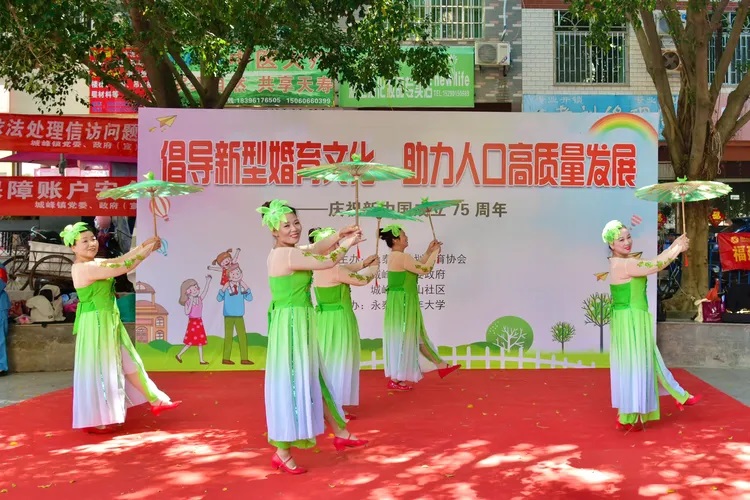 5月29日上午,永泰县老年大学联合县计生协在旗山社区文化广场举办“倡导新型婚育文化 助力人口高质量发展”主题会员日活动文艺演出。