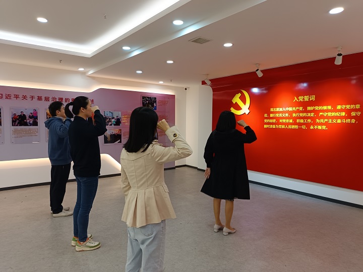 最后,全体党员在领誓人的带领下举起右臂共同宣誓,重温入党誓词,一句句铿锵有力的誓词,让党员们重温入党时的郑重承诺和坚定决心。