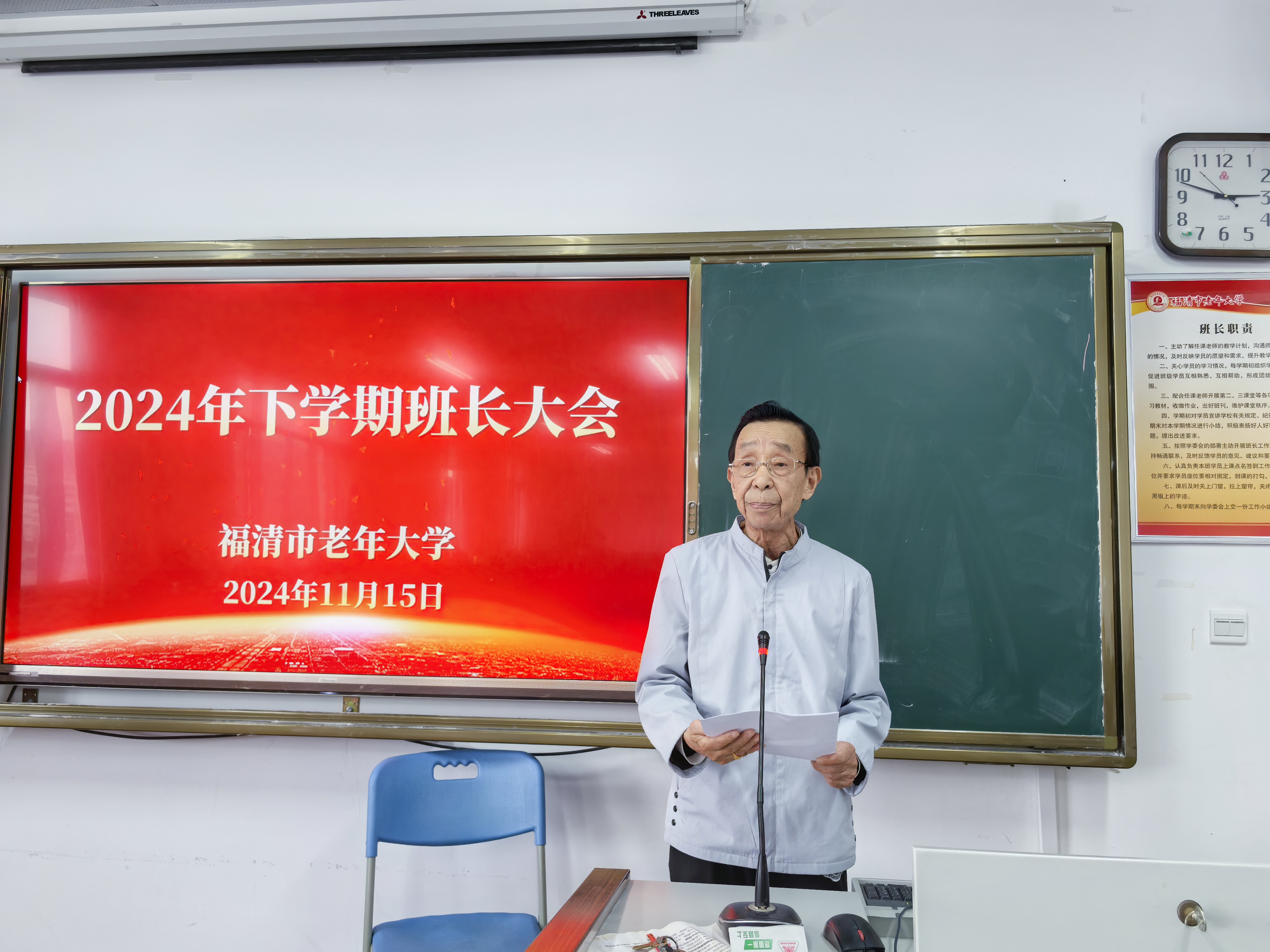 为加强班长队伍建设,提升班级管理能力,推动老年大学办学质量和管理水平的提升,近日,福清市老年大学召开2024年下学期班长大会。学校全体办学人员、学委会全体成员和全体班长等约110人参加了会议。