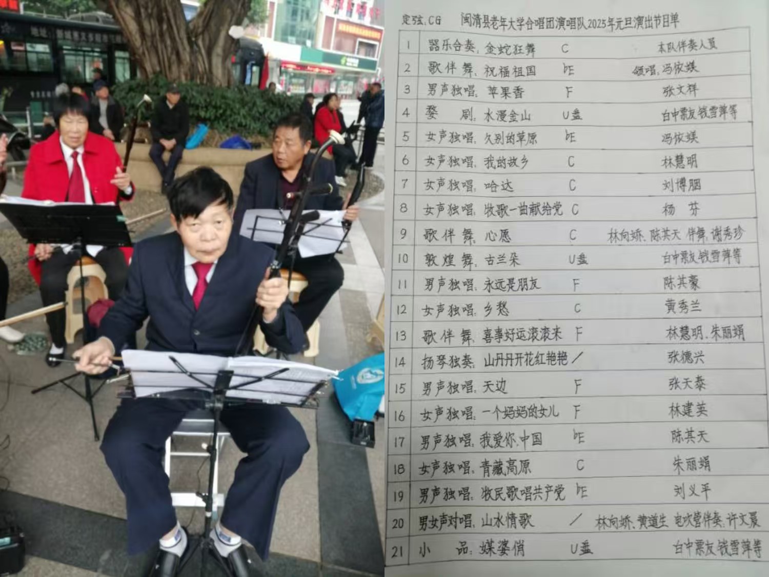 12月27日上午,县老年大学合唱团演唱队、白中镇老年学校联合在城关乃裳广场举办“迎元旦.颂祖国”文艺演出活动,献演节目21个,时间近二个小时,观众达300多人次。专职副校长游淑金、校办主任王胜燕、白中镇老年学校钱雪萍等同志参加活动。