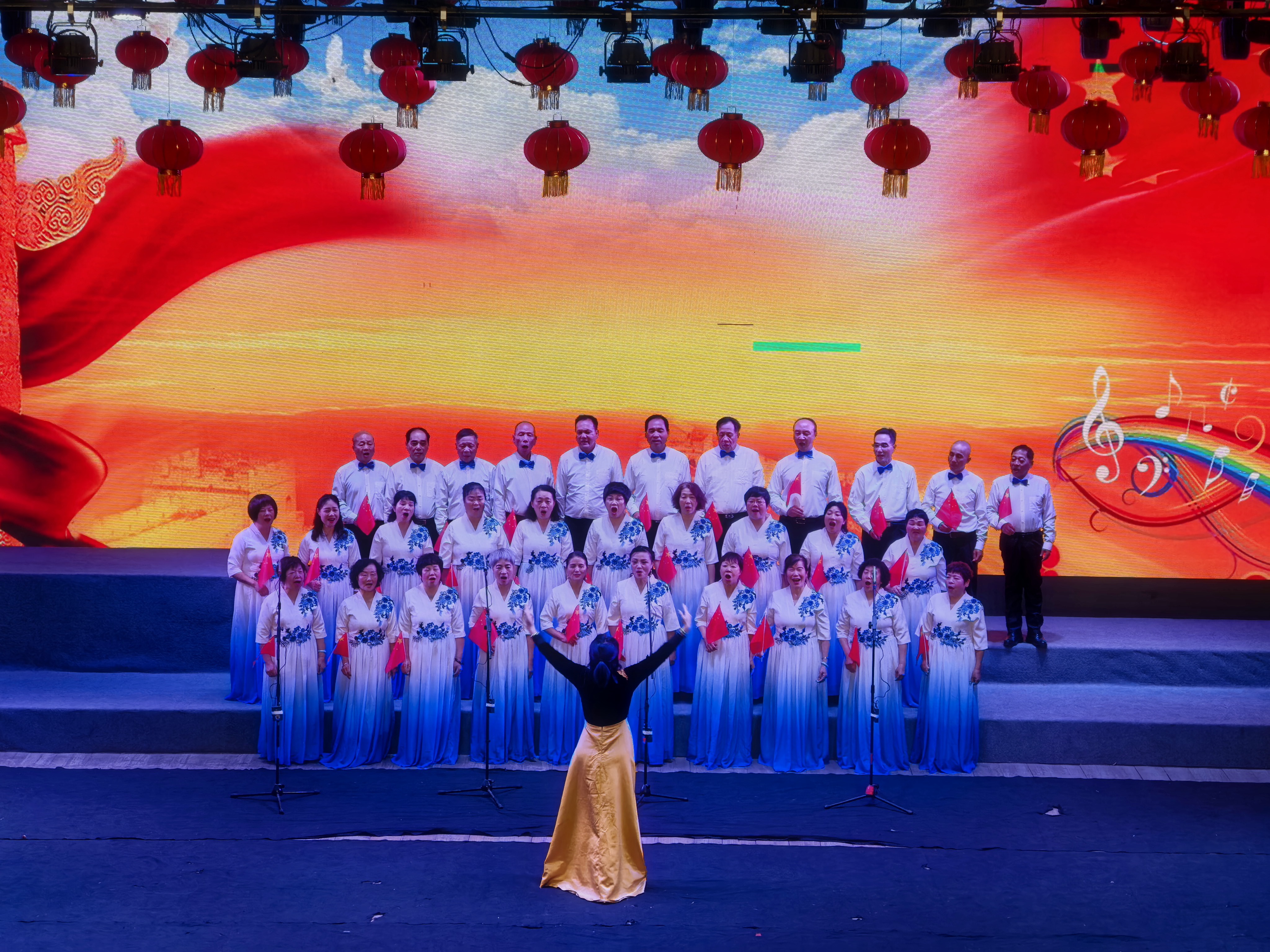 整场演出汇聚多元艺术形式,十余个节目轮番上演,尽显老年群体的活力与创造力:民族舞《莲池夜月》《永遇乐·宋韵灯影》以柔美身姿勾勒烟雨朦胧的诗意画卷;合唱团演绎《红旗飘飘》,清澈和声与磅礴气势交织,唱响对美好生活的向往;男女声二重唱《来到遥远的地方》以深情嗓音抒发家国情怀,引发全场共鸣;民乐合奏《闹新春》用欢快旋律传递出辞旧迎新的喜悦;电声合奏《我唱赞歌献祖国》以铿锵琴键与鼓点奏响爱国情怀。闽剧选段《才子情缘》以婉转唱腔展现地方戏曲的独特魅力;模特走秀《平遥古韵》中,银发学员们身着华服,步履从容,尽显岁月沉淀的优雅气质,诠释了“最美不过夕阳红”的动人风采。