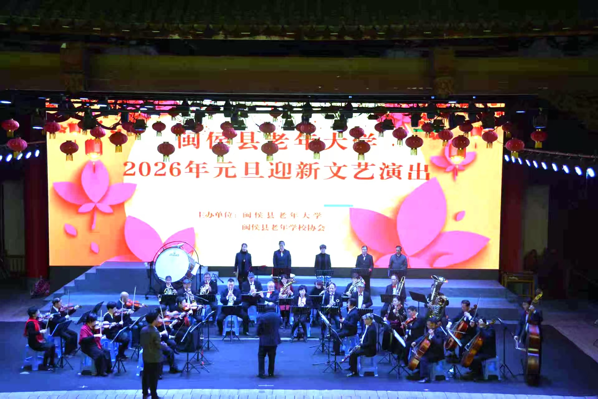 岁序更替,华章日新。为迎接2026年元旦佳节,丰富老年群体精神文化生活,12月29日晚,闽侯县老年大学在闽都民俗园隆重举办“庆元旦·迎新春”文艺汇演活动。这场融合传统韵味与现代活力的文化盛宴,在辞旧迎新的美好时刻,以悠扬歌声、灵动舞姿和铿锵器乐,绘就了一幅“老有所学、老有所乐”的绚丽画卷。