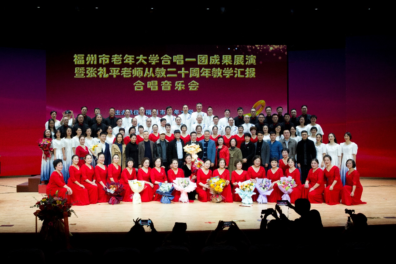 新年伊始,"福州市老年大学合唱一团教学成果展演暨张礼平老师从教二十周年合唱音乐会”在福州市老年大学礼堂举行。音乐会在混声合唱《我歌唱的理由有很多》中拉开序幕,整场共演唱了十多首合唱经典作品。音乐会还邀请到省合唱协会邵宁会长等十几位我省业内专家嘉宾莅临现场指导。