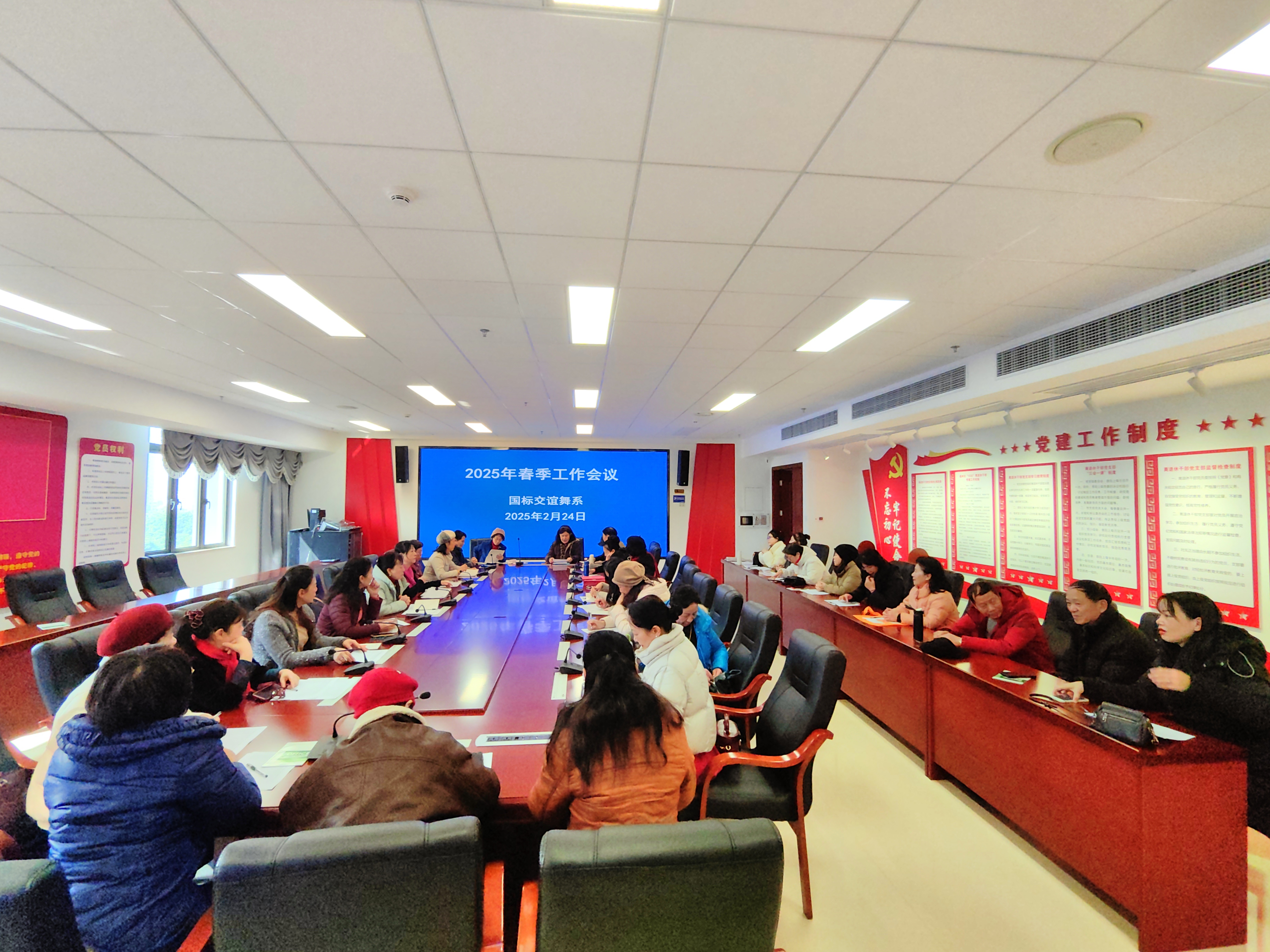 2月24日上午,国标交谊舞系围绕“教学管理、党建引领、学会工作”等方面,召开2025年春季开学工作会议,对新学期的工作进行了全面思考与规划。临时党支部书记、系主任林向阳主持会议。
