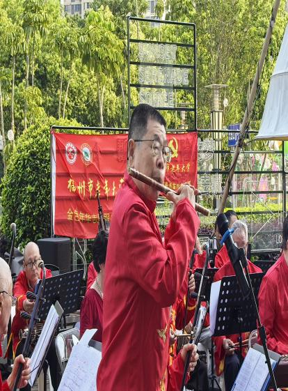 4月18日下午,由福建海峡艺术中心牵头,福州市老年大学金色年华志愿服务总队民乐团精心筹备的“潮声乐起、银龄共韵”环保主题音乐会在世纪金源购物中心广场盛大举行。这场汇聚传统民乐与环保理念的视听盛宴,吸引了众多市民驻足欣赏,现场气氛热烈,掌声经久不息。