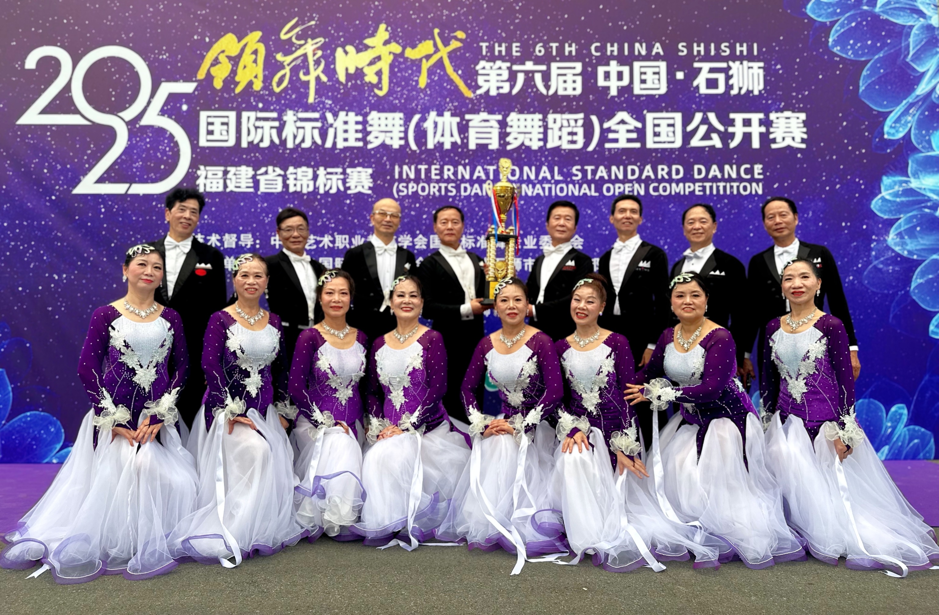 8月3日,在福建省石狮市举办的"领舞时代"第六届国际标准舞全国公开赛&福建锦标赛上,福州市老年大学国标交谊舞队以精湛的摩登舞表演技惊四座,在成人团体表演赛中一举夺魁。这支平均年龄65岁的银发舞者团队,用优雅的舞姿和饱满的热情征服了评委与观众。