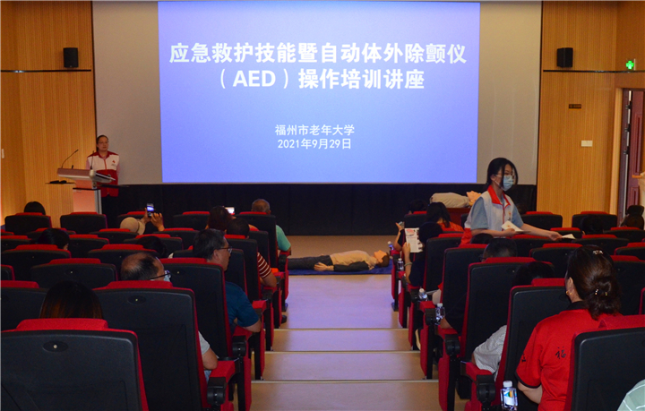 9月29日,福州市老年大学邀请福建省红十字现场救护培训中心培训部部长刘丽琴等专业人员,对校干部职工、系主任及物业人员开展应急救护技能暨自动体外除颤仪(AED)操作培训。