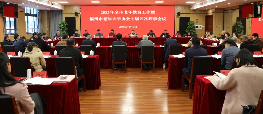 1月10日,福州市2023年全市老年教育工作暨福州市老年大学协会七届四次理事会议在市老年大学召开。会议学习贯彻习近平新时代中国特色社会主义思想和党的二十大精神,传达学习2023年全省老年教育工作暨福建省老年大学协会六届二次理事会议主要精神,回顾总结2023年全市老年教育工作,研究部署2024年全市老年教育工作。