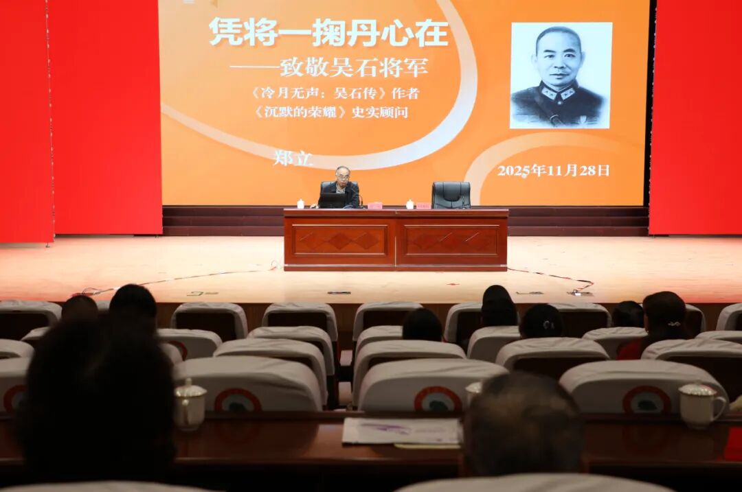 11月28日下午,福州市老年大学迎来一场震撼心灵的红色回响——电视剧《沉默的荣耀》史实顾问、《冷月无声:吴石传》作者郑立,以“凭将一掬丹心在——致敬吴石将军”为主题,为近300名市直机关离退休干部党支部书记、老党员及老年大学学员代表,深情讲述吴石将军那段尘封却滚烫的英雄岁月。