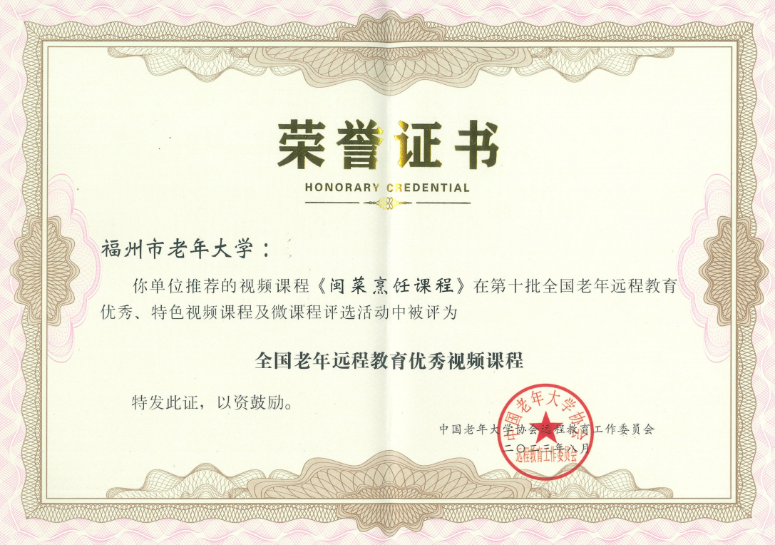 2023.8《闽菜烹饪课程》获评全国老年远程教育优秀视频课程