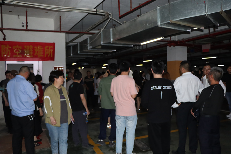 演练开始前,工作人员先普及国防知识,并讲解演练的具体流程、疏散路线及注意事项。随着预先警报响起,人防疏散演练正式开始。参与演练的居民在丹辉社区志愿者、皇庭名郡建发物业的指引下,沿着预定路线迅速、有序地疏散到小区地下人防工程避险。防空警报解除后,全体演练人员有序返回地面,整个演练达到预期效果。