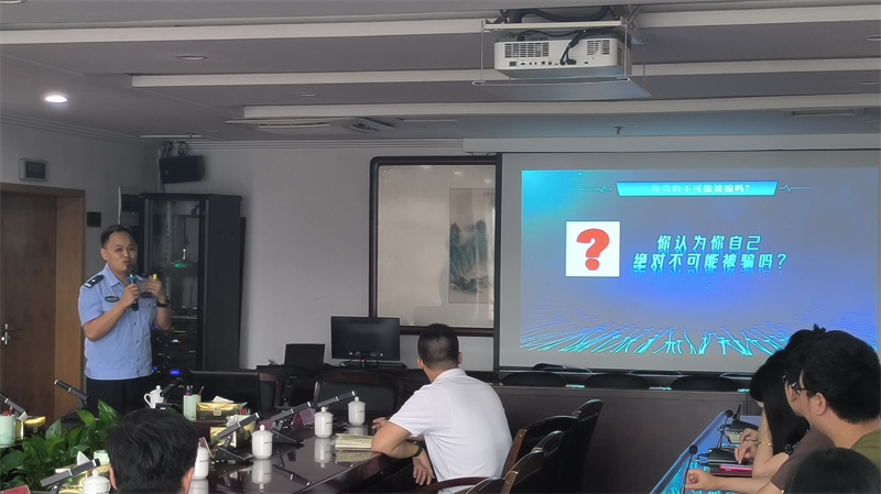 为切实提高我办干部的反诈意识,有效遏制电信网络诈骗案件的发生,近期,我办邀请台江分局刑侦大队反诈中队长沈朴锦担任讲解员,开展以“八项规定划红线 反诈宣传亮警灯”为主题的反诈宣传活动,积极引导干部下载国家反诈中心APP ,守护好自己的“钱袋子”。