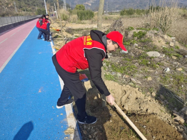 植树现场,暖意融融、干劲十足。志愿者们身着志愿服装,分工明确、配合默契,严格按照植树规范,有条不紊地开展挖坑、扶苗、填土、踩实、浇水等一系列操作,每一个环节都一丝不苟、认真细致。大家不怕脏、不怕累,默契配合、互帮互助,亲手栽种下一棵棵充满生机的树苗,用汗水为杭山村增添了一抹新绿,也种下了守护生态环境的美好希望。活动期间,志愿者们还向村民普及植树造林、生态保护相关知识,引导群众树立“植绿、护绿、爱绿”的生态理念,营造全民参与生态文明建设的良好氛围。