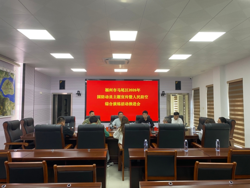 为深入贯彻落实福州市国动办关于2026年国防动员主题宣传及人民防空综合演练工作部署,以及区政府领导相关批示指示要求, 4月9日下午,马尾区国动办组织召开2026年国防动员主题宣传暨人民防空综合演练活动推进会。区委宣传部,区人武部、政府办、教育局、融媒体中心及各镇(街)武装部参会。会议总结了前期工作,并对下一步重点任务作出部署。