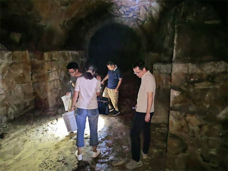 在项目现场,工作人员对照工程图纸,深入乌山人防工程、后县山人防工程、于山人防工程等进行现场踏勘,摸清工程走向、周边区域地形、各出入口位置,内部建筑平面布局、被覆情况,初步确定后期勘测现场作业内容、勘测方式、控制点的选择、数据建模参考材质等;双方就下一步编制测绘方案,确保后期勘测贴合现状、数据准确、要素齐全、图纸详尽,以及做好现场勘测自身安全防护工作等具体问题进行了充分探讨。