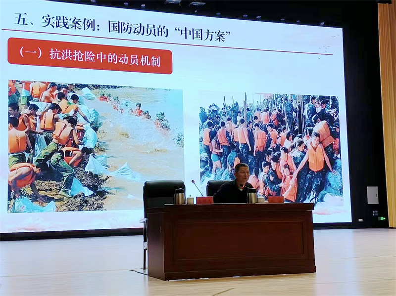 授课现场,杭琥紧紧围绕新时代国防动员工作的使命任务,通过精炼的论述、翔实的资料、直观的影像以及鲜活的案例,系统阐述了国防动员在国家安全体系中的战略定位与重要作用。课程重点解析了国防动员所承载的“积蓄功能、转化功能、威慑功能、服务功能”,清晰勾勒出其涵盖人民武装、经济动员、交通战备、人民防空等多维度的体系构成,并深入浅出地介绍了支撑国防动员工作的法律法规体系,授课内容层层递进、逻辑清晰。