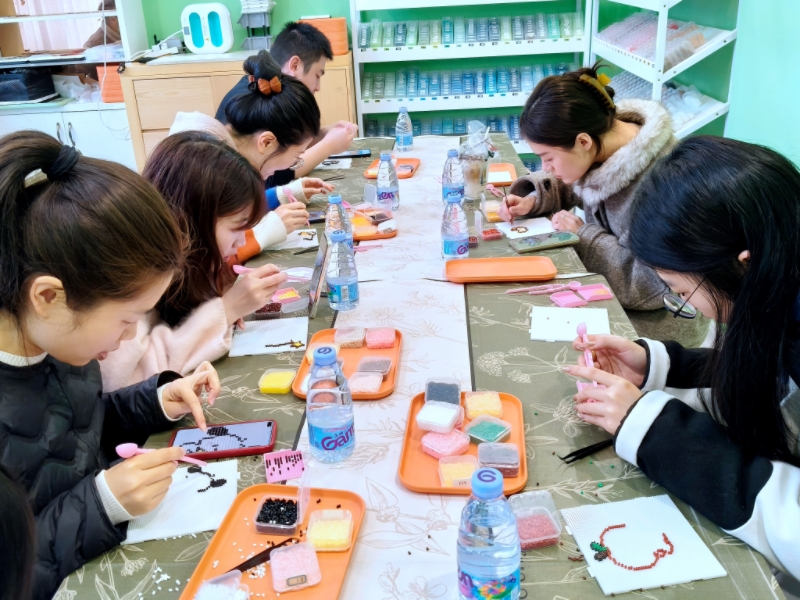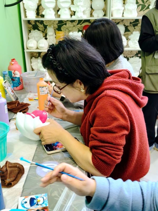 活动现场暖意融融、创意纷呈。在传统手工调香体验区,大家跟随老师了解香道文化渊源,甄选天然香料、配比调和、静心凝香,在一呼一吸间感受非遗香韵的雅致与治愈。有人偏爱清雅的草木香,有人钟情醇厚的木质调,大家一边调配,一边交流心得,亲手调制出专属香品,让千年香艺在指尖焕新。拼豆创意制作区里,五颜六色的拼豆在指尖跳跃,大家或对照图纸精心排列,或即兴发挥自由创作,可爱的卡通形象、简约的几何图案……随着电熨斗轻轻熨过,一颗颗独立的豆粒融为一体,变成了一件件充满心意的小作品。而在另一侧,石膏娃娃彩绘区同样热闹非凡,大家手持画笔,为纯白的石膏坯体添上缤纷的色彩,有人认真勾勒,有人大胆涂鸦,或典雅国风,或萌趣可爱,每一笔都带着对生活的热爱和对美的理解,现场欢声笑语不断,尽显和谐融洽的机关氛围。