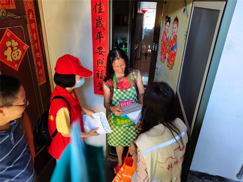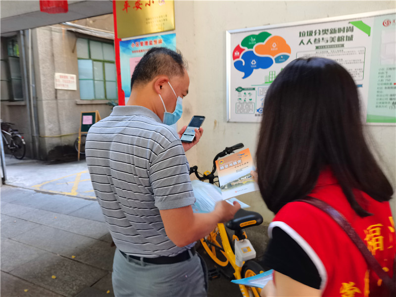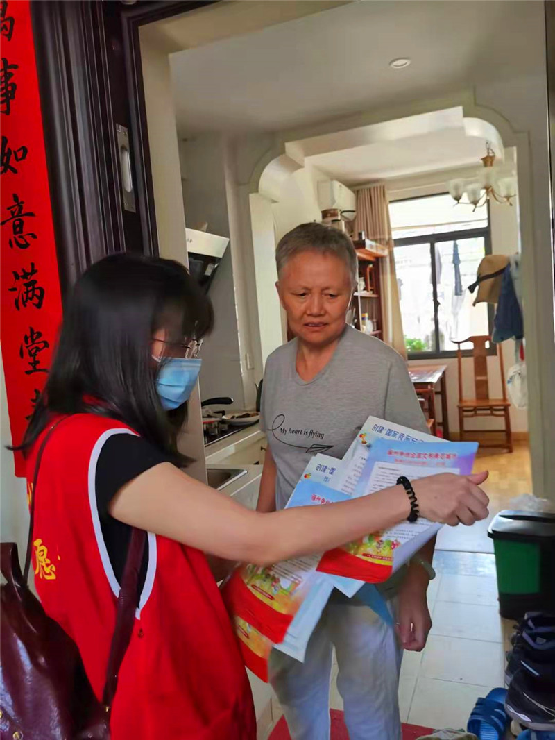 “阿姨,如果您对食品安全有任何意见建议,请扫这个二维码,可以参与食品安全互动,一起为食安福州加“油”;当您发现食品安全违法线索时,请拨打“12315”,一起向违法行为说“不”当您为如何选择放心食材感到困惑时,还可以登录食品安全的官方网站,了解相关知识。”志愿者们上门入户热心为社区居民普及食品安全理念,大力宣传有关食品安全方面的法律常识,不断增强居民群众对食品安全的防范意识和自我保护能力。同时建议群众合理安排国庆假期节日生活、减少非必要聚集性活动,自觉配合落实疫情防控措施,认真做好人个人防护,养成健康生活方式,合理进行垃圾分类,共建低碳生活,做幸福平安榕城人。