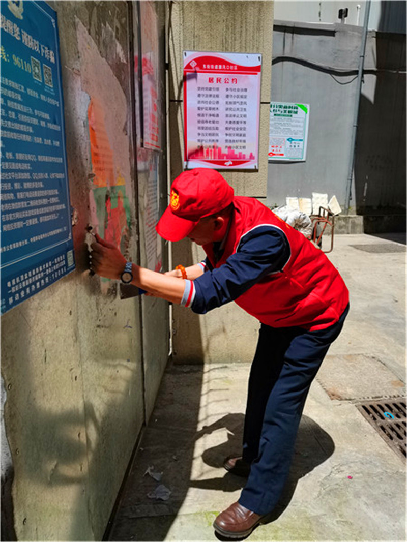 随后,志愿者们带上扫帚、火钳、清洁球、刮刀、垃圾袋等工具,来到旗汛口无物业小区,认真清扫小区卫生死角,清除铁门、墙壁的“牛皮癣”,发放垃圾分类宣传单,耐心解答居民群众提出的日常垃圾分类难题,并配合社区工作人员进行体温登记、查健康码、行程码、开展疫情防控宣传、劝导60岁以上长者接种疫苗,以实际行动响应“无疫小区创建”的号召。