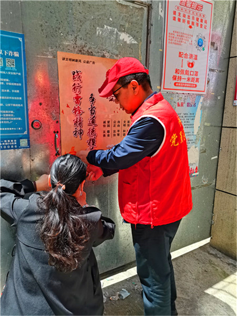 5月18日,市人防办志愿者慰问旗汛口社区一线抗疫人员,并充分发挥党员干部先锋模范作用,主动下沉社区开展“无疫小区”创建活动。
