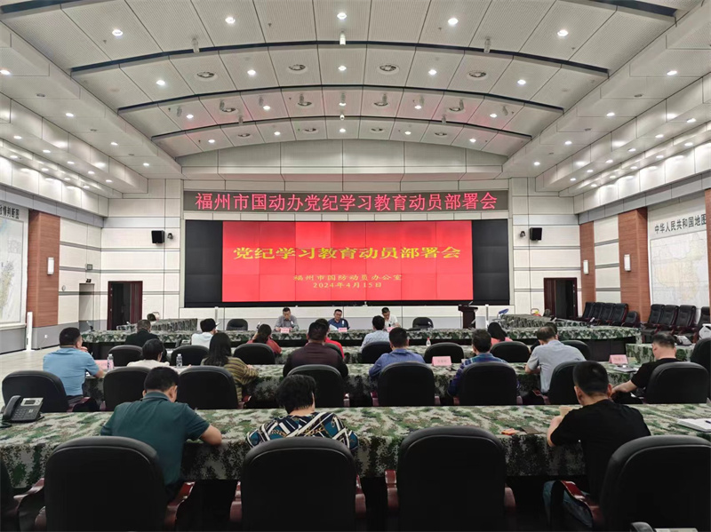 4月15日,福州市国动办召开党纪学习教育动员部署会,认真学习习近平总书记关于党纪学习教育的重要讲话和重要指示精神,传达学习中央和省、市党纪学习教育有关会议文件精神, 研究部署我办学习教育工作。党组书记、主任林吓平作动员部署讲话,全办党员干部职工、部分离退休干部参加。