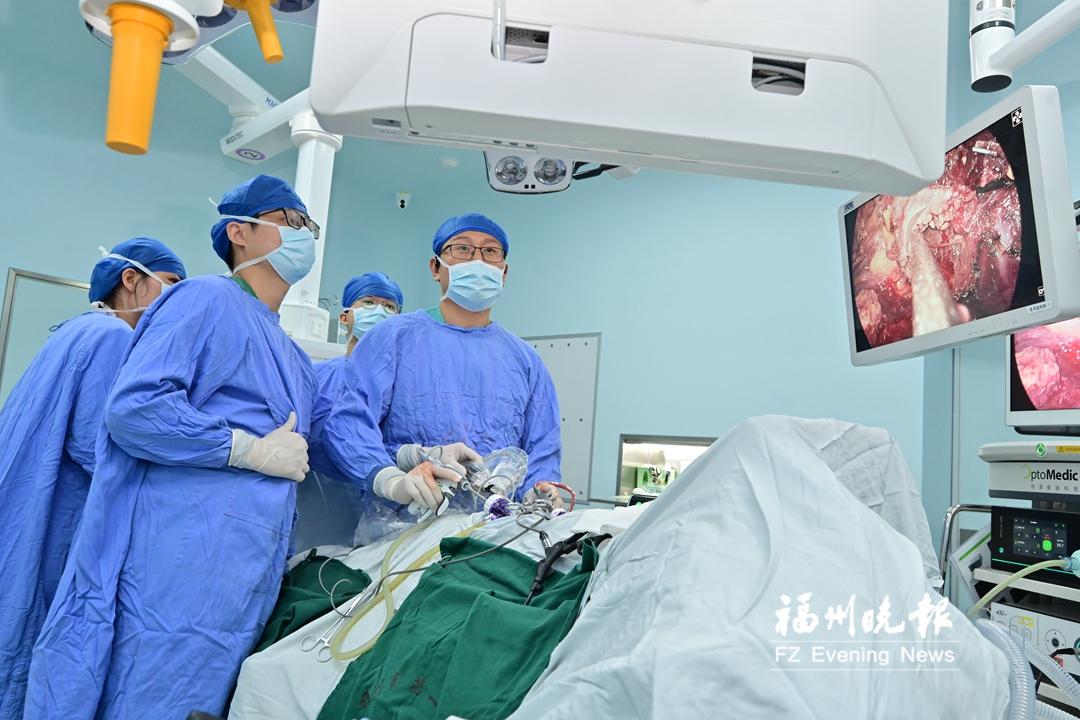 手术室里,朱凌峰团队正进行腔镜手术,镜下画面被直播。