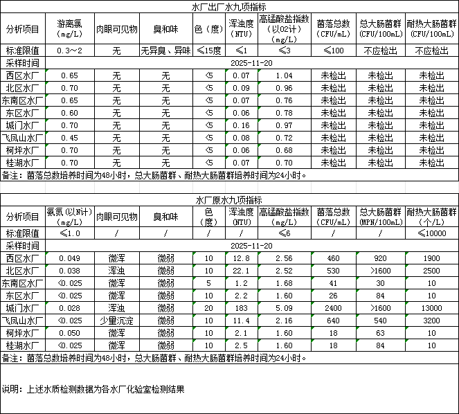2025年11月20日供水水质信息发布