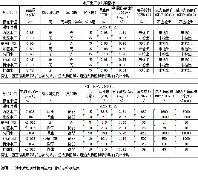 2025年12月28日供水水质信息发布