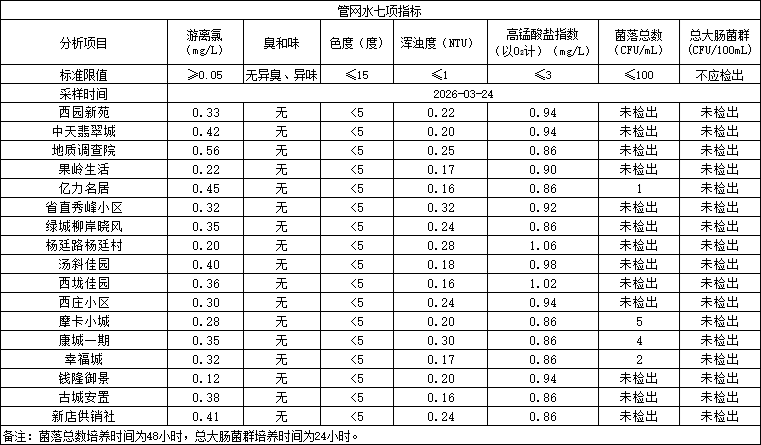 2026年3月24日管网水日常检测